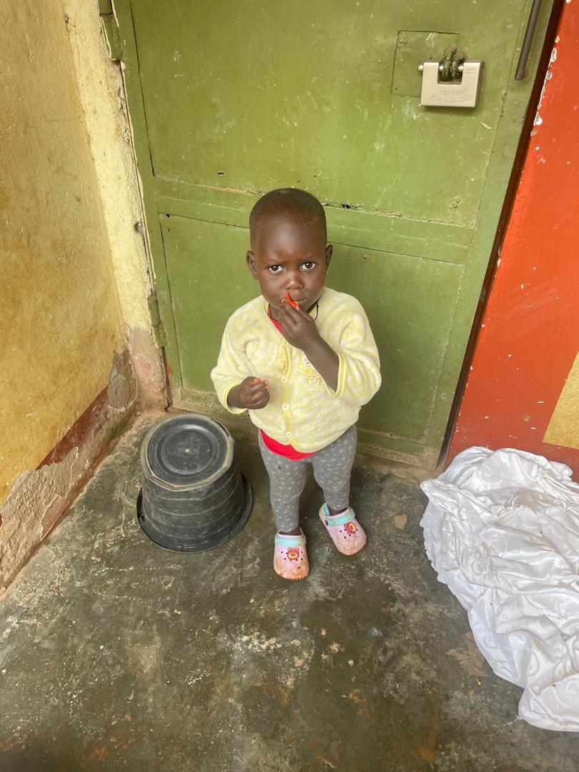 Apio Abigail is 3 years old in Baby Class. She lives in a poor urban community with her mother. She is always left at home alone as the mother vends green to get food for the family.
