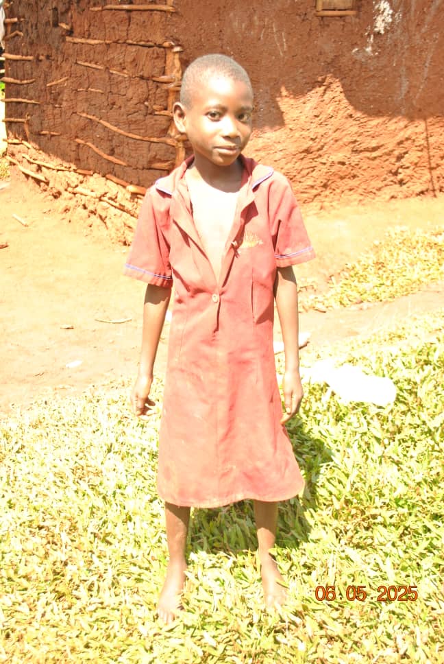 Rashid is 8 years old in P.2 class, he is from a family of 6 children and he is the 5th child. His mother cleans church to earn a living. She struggles with her 6 children to feed them. Paying school requirements is very difficult for her.